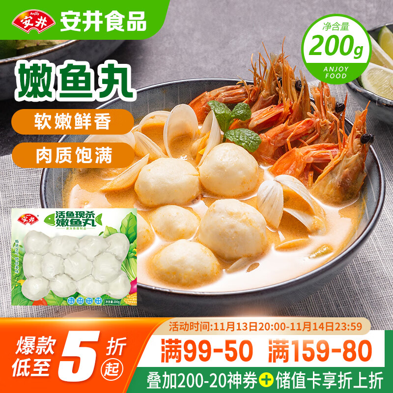 包邮 安井 嫩鱼丸 200g 1包 鱼糜含量≥65% 锁鲜装火锅麻辣烫关东煮丸料