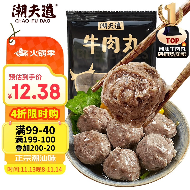 包邮 潮夫道牛肉丸潮汕手打250g 火锅食材关东煮丸子丸料空气炸锅生鲜麻辣烫