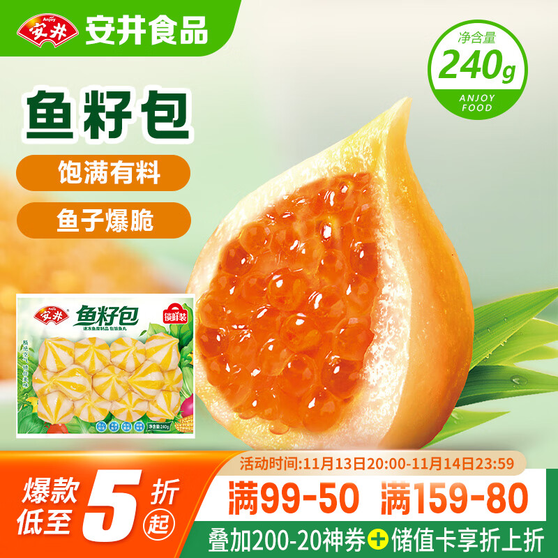 包邮 安井 鱼籽包 240g 1包 鱼糜含量45% 锁鲜装火锅麻辣烫关东煮丸料